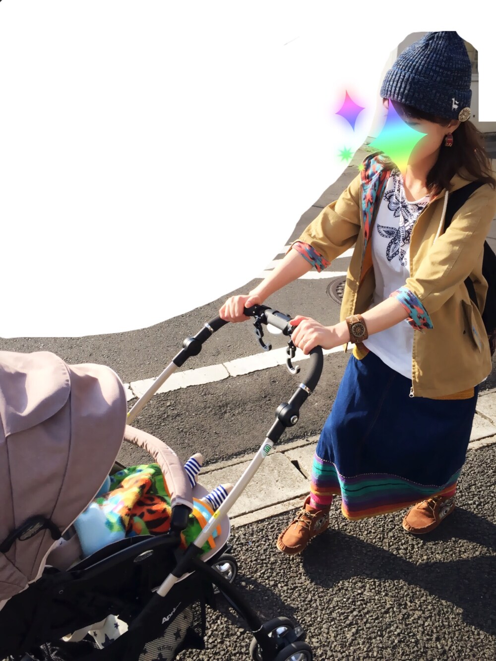 今まで普通に歩いてた道もベビーカーだと危険がいっぱいな事に気付いた。 舗装されてないガタガタ道は大変! 授乳時にめくりやすいように、めっきりTシャツ率高めになったな〜