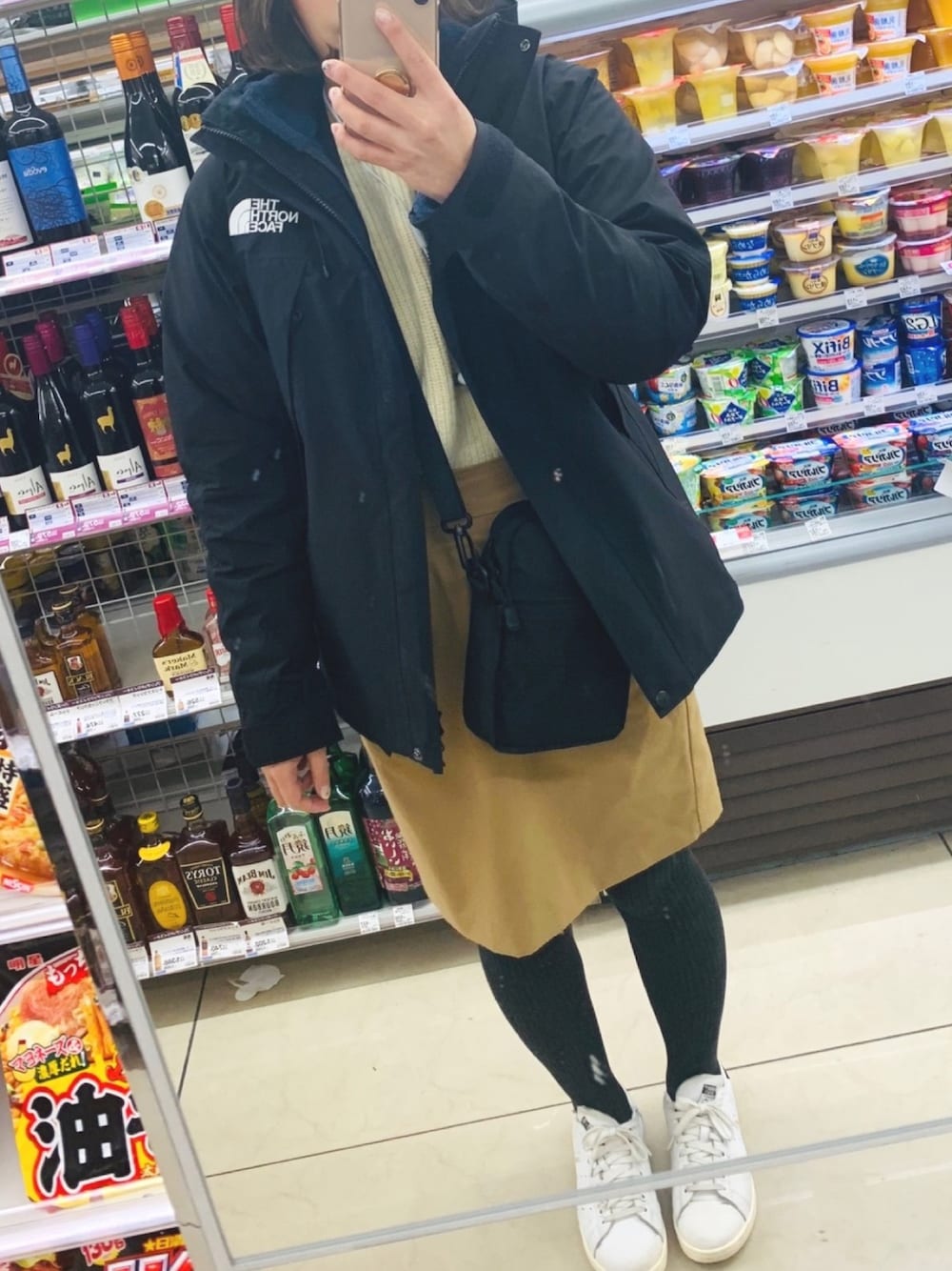 久しぶりのスカート。 スリーコインズのリブタイツとノースフェイスで防寒コーデ!