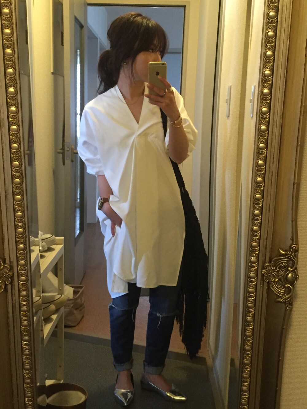 yayoiのシャツ/ブラウス「Vネックシャツチュニック」を使ったコーディネート