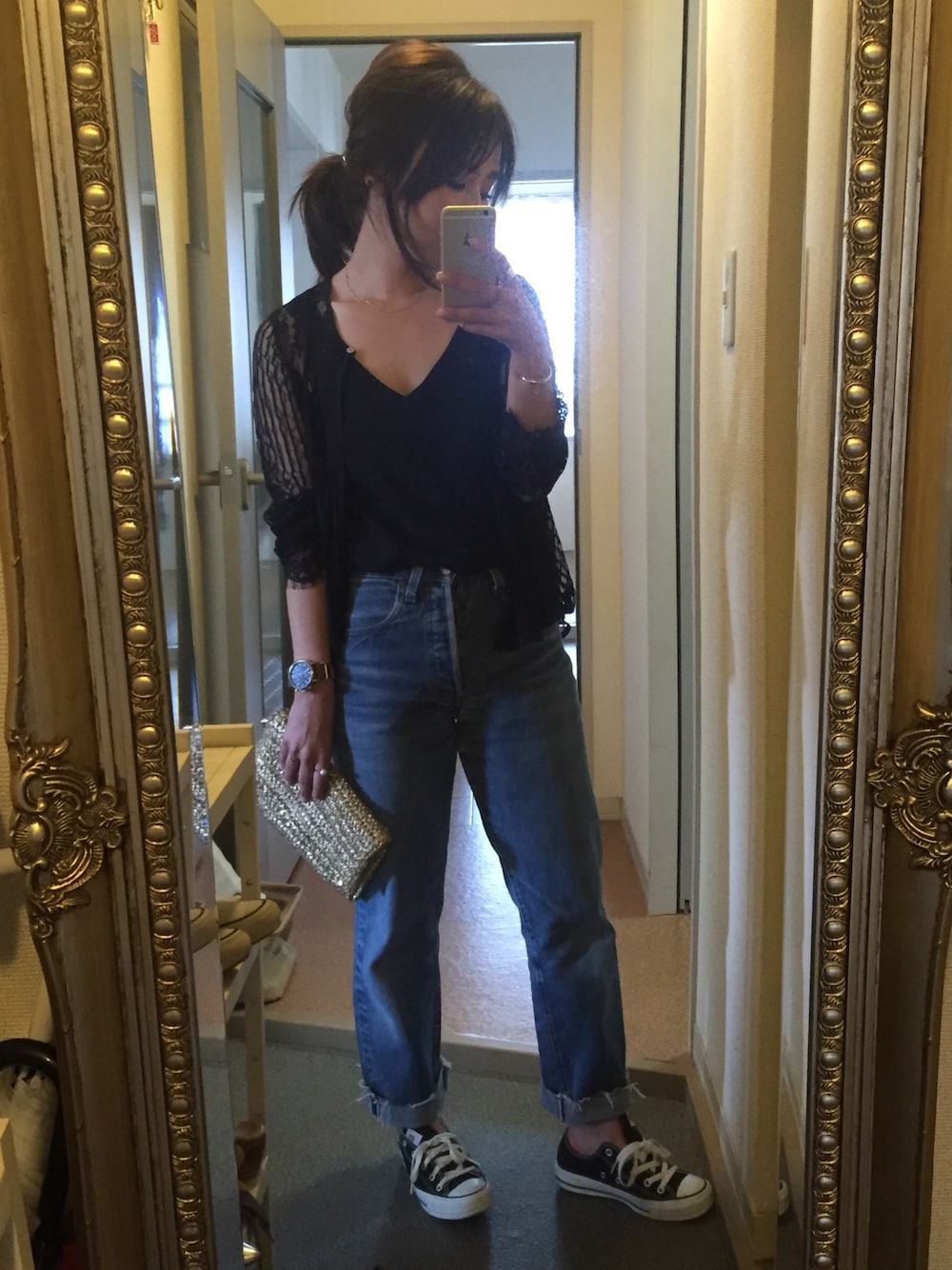 暑いくらいの気温💦 レース1枚でも暑い((´д`))💦 トップスが少しセクシー寄り(笑)なので、デニムとコンバースで抑えました♡