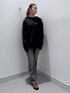 トップスは丈が長めのフーディー✨✨ 右胸のところに刺繍もほどこされています! 166センチでもお尻が隠れてくれる長さでワンピース型でも着れちゃう丈間です🖤 ボトムスははフレア型のデニムパンツで足も綺麗に見せてくれつつ、太もも、ふくらはぎのところにダメージデザインがあってオシャレ度アップ⤴️ ストレッチ性もある最高アイテムです❤️🔥