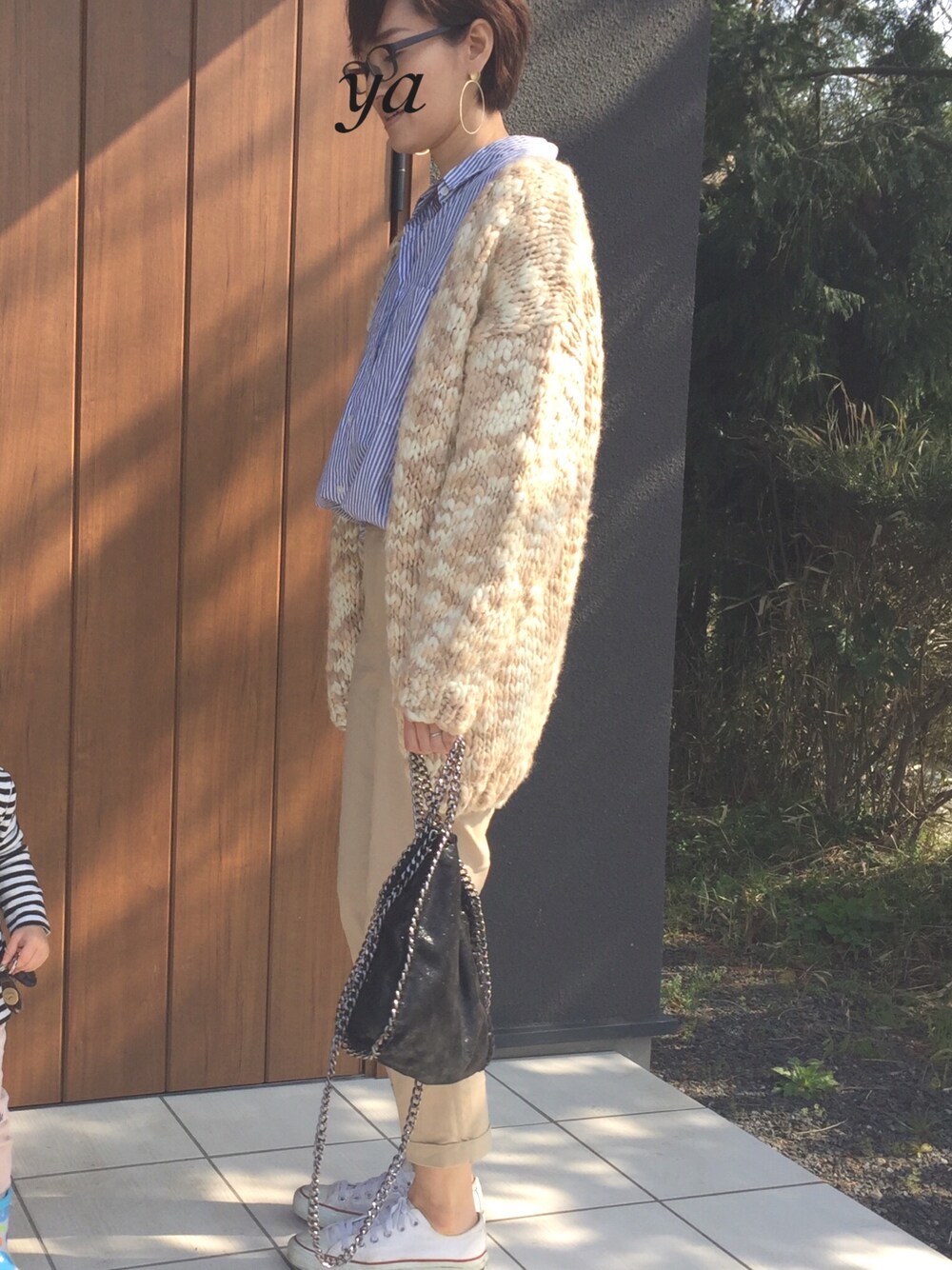 この日は暖かかったので、ニットのカーデは脱いでシャツのみで買い物へ👚 ニコアンドで薄手のカーキシャツを取り寄せしてもらいました♡