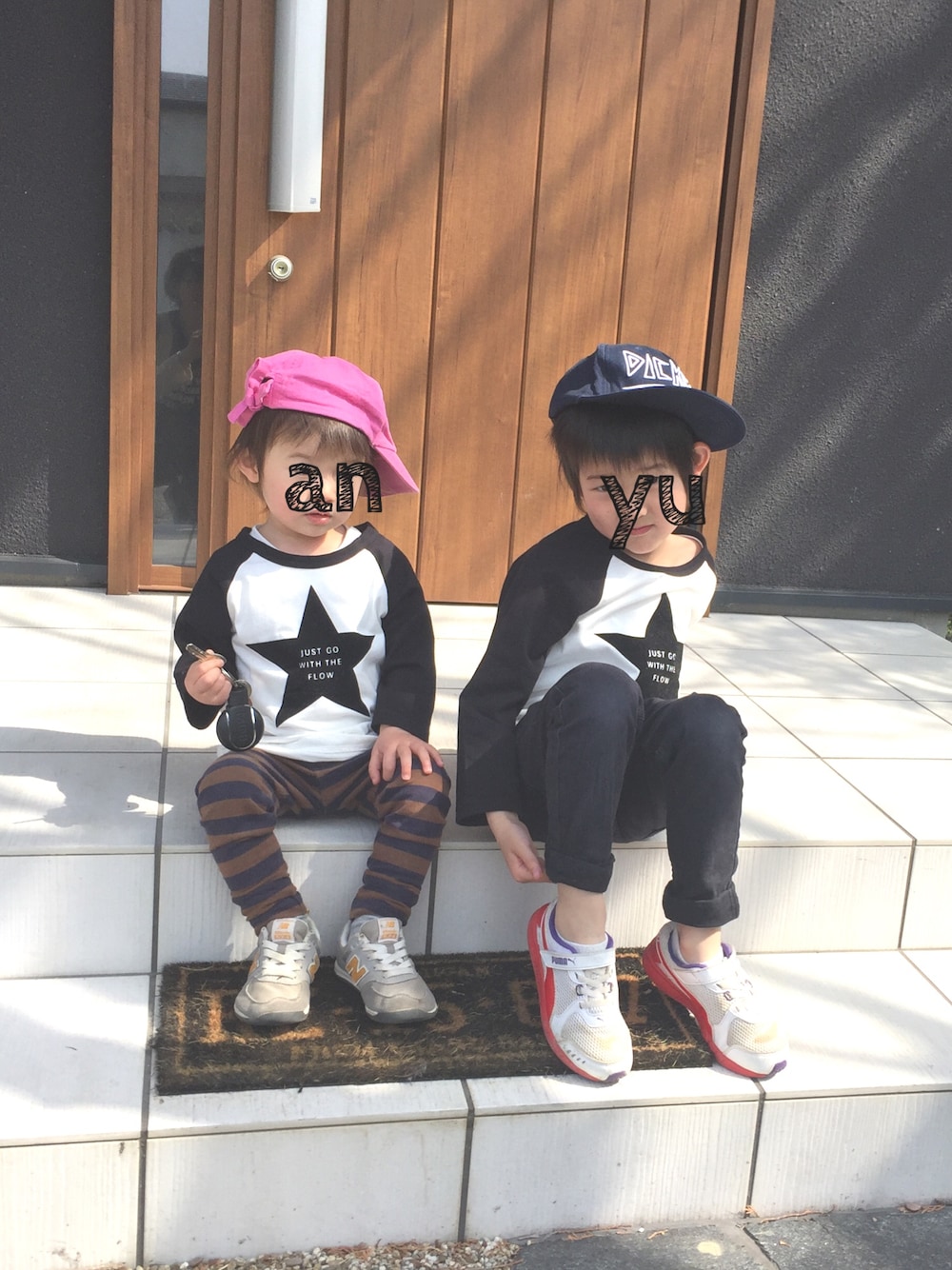 初めての兄妹リンクコーデ。 この後、お昼頃まで妹とお揃いの服を着ている事に気付かない兄(笑) 上はのんびりやが多いんかなぁ〜