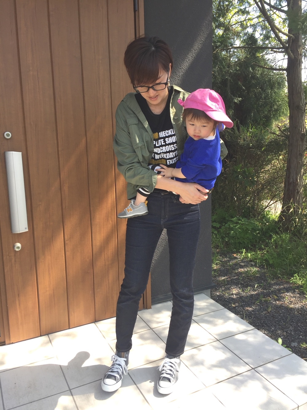 ザラのTシャツにユニクロのシガレットジーンズで楽ちんコーデ。