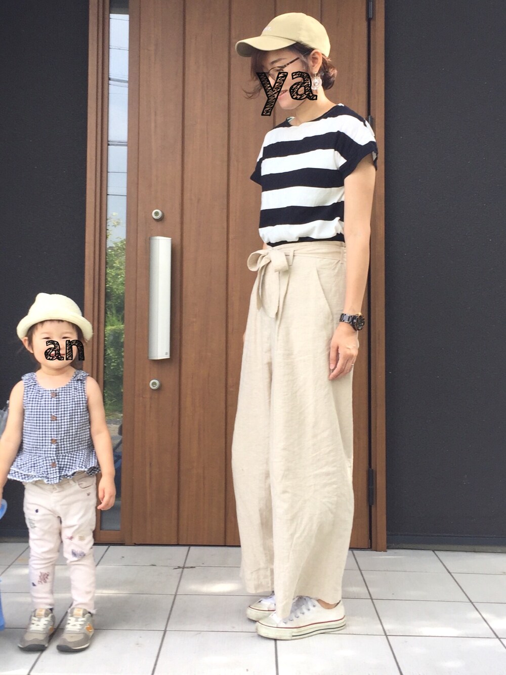 家族でLEGO LANDに行った時のコーデ🎪 動きやすくて楽なリネンパンツと、スニーカーで。 娘のzara kidsのデニムは、刺繍が所々に入ってて裾の切りっぱなしのデザインが凄く可愛い♡ NBのスニーカーはお兄ちゃんのお下がり👟