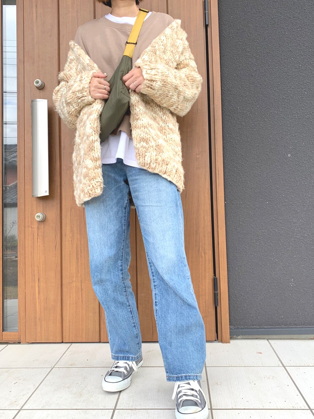 このニットカーデも着納めかな💁♀️ 今日から暖かくなるみたいなのでそろそろ衣替えしないと🌸 着まわしコーデです🙇♂️