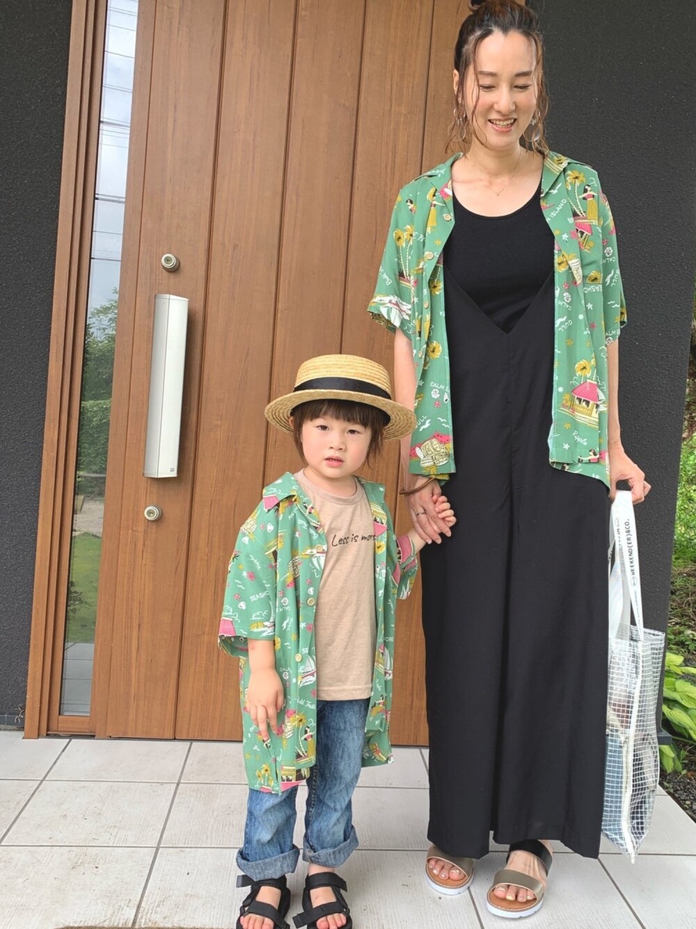 お兄ちゃんとお揃いで買ったアロハシャツ🌺 今日は暑い!って着てくれなかったので妹が着用してます😳 なのでサイズ感がだいぶ大きめ。笑 でもダボっとしててそれもまた可愛いかな😊