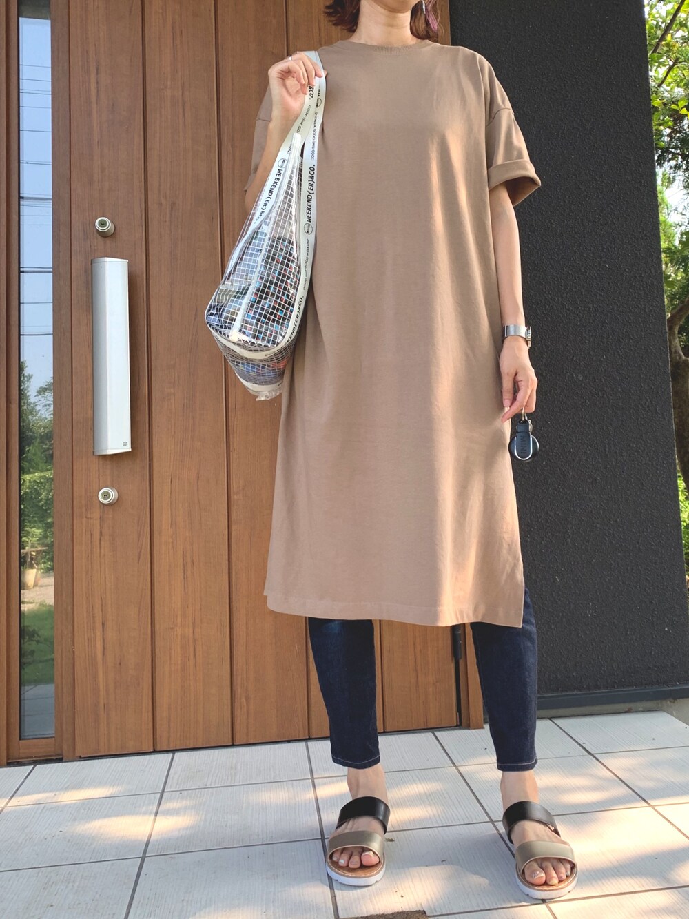 ワンピースとUNIQLOのシガレットジーンズでシンプルに。☺️ 来週はフットネイルの付け替え🌺 どんなデザインにしようかな🌻