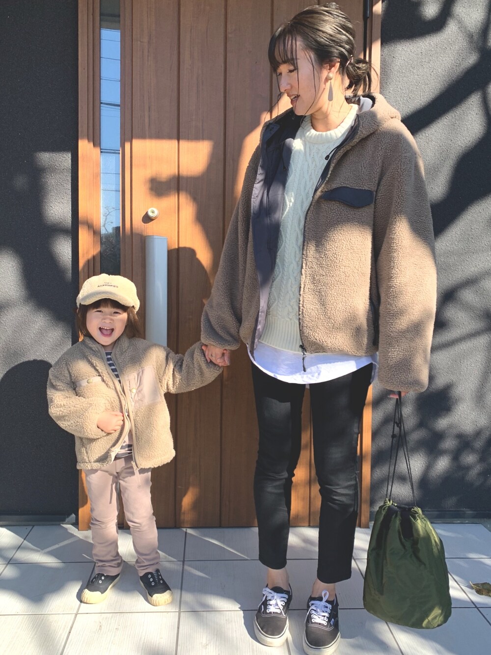 やっと展示会でオーダーしたキッズのOSOROボアジャケット取りに行って来ました🧥 サイズぴったり! わたしが着ているボアジャケットは、メンズサイズ。旦那が買ったのを拝借しました😁 後はお兄ちゃんと3人でお揃いコーデしたいな♡