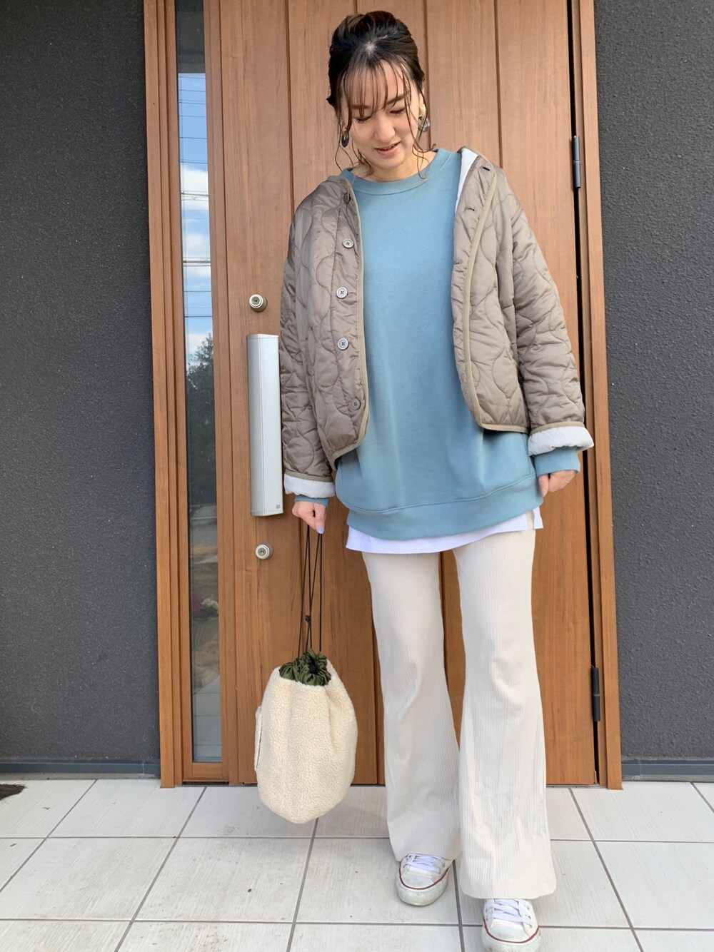 部屋着に見えてないか心配なGUのスウェット。 くすみカラーは可愛いけど難しい😂