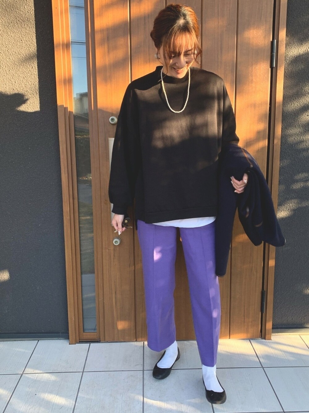 裏地が起毛になっててとても暖かいプルオーバー👏 2年前位にGUで購入して、まだ着てる😅 パープルパンツと合う♡