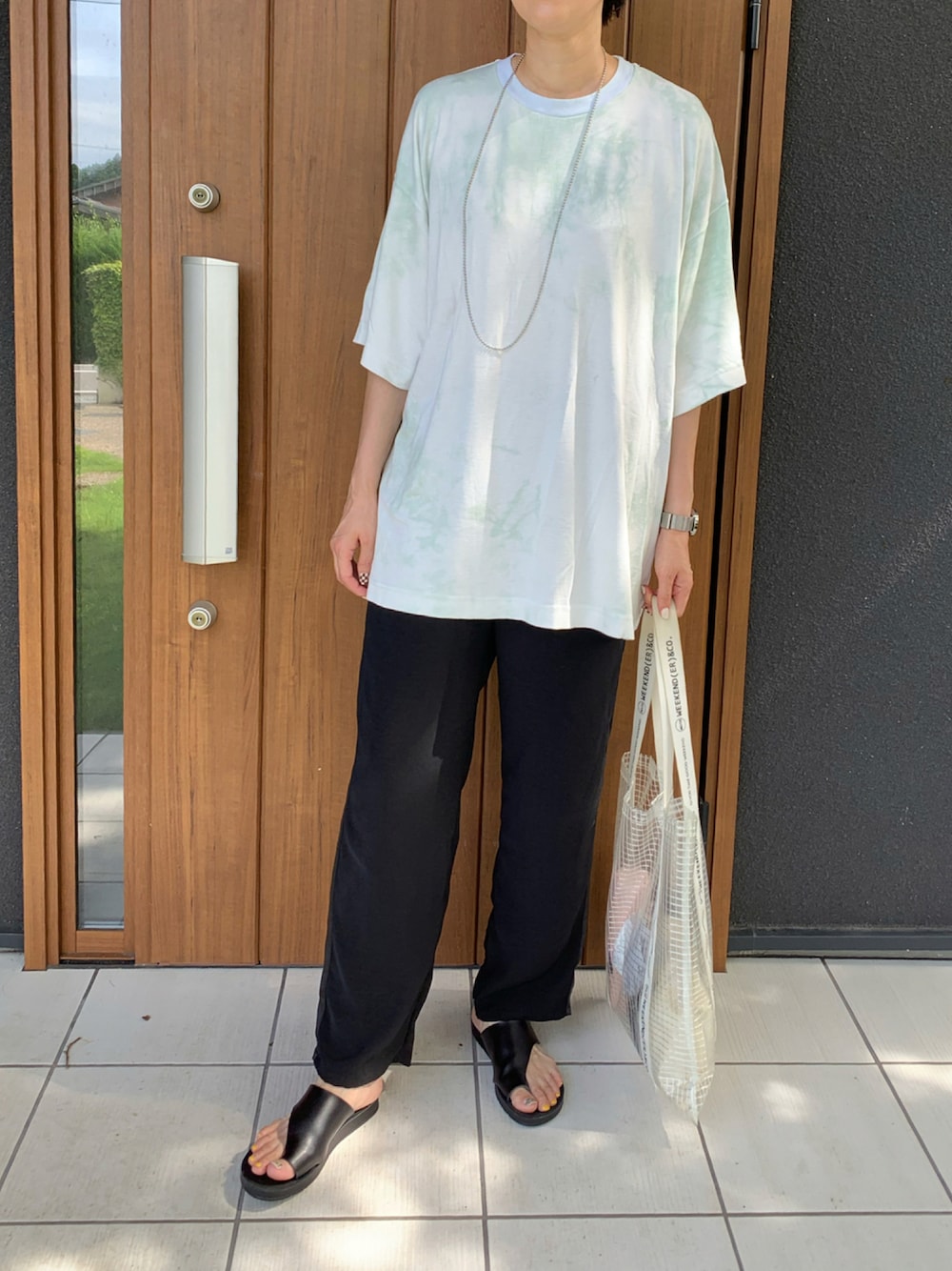 2色買いしたタイダイTシャツ👕 黒のラインパンツに合わせてシンプル&楽チン☺️