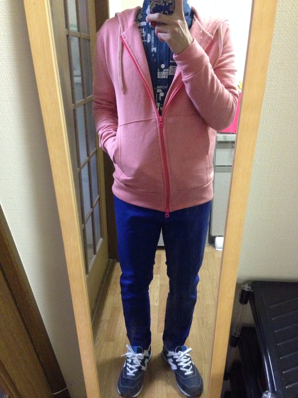 春っぽい色使いにしてみました! シャツが個性ありすぎたんですけど ピンクのパーカーで程良い感じに なりました(。-∀-。)