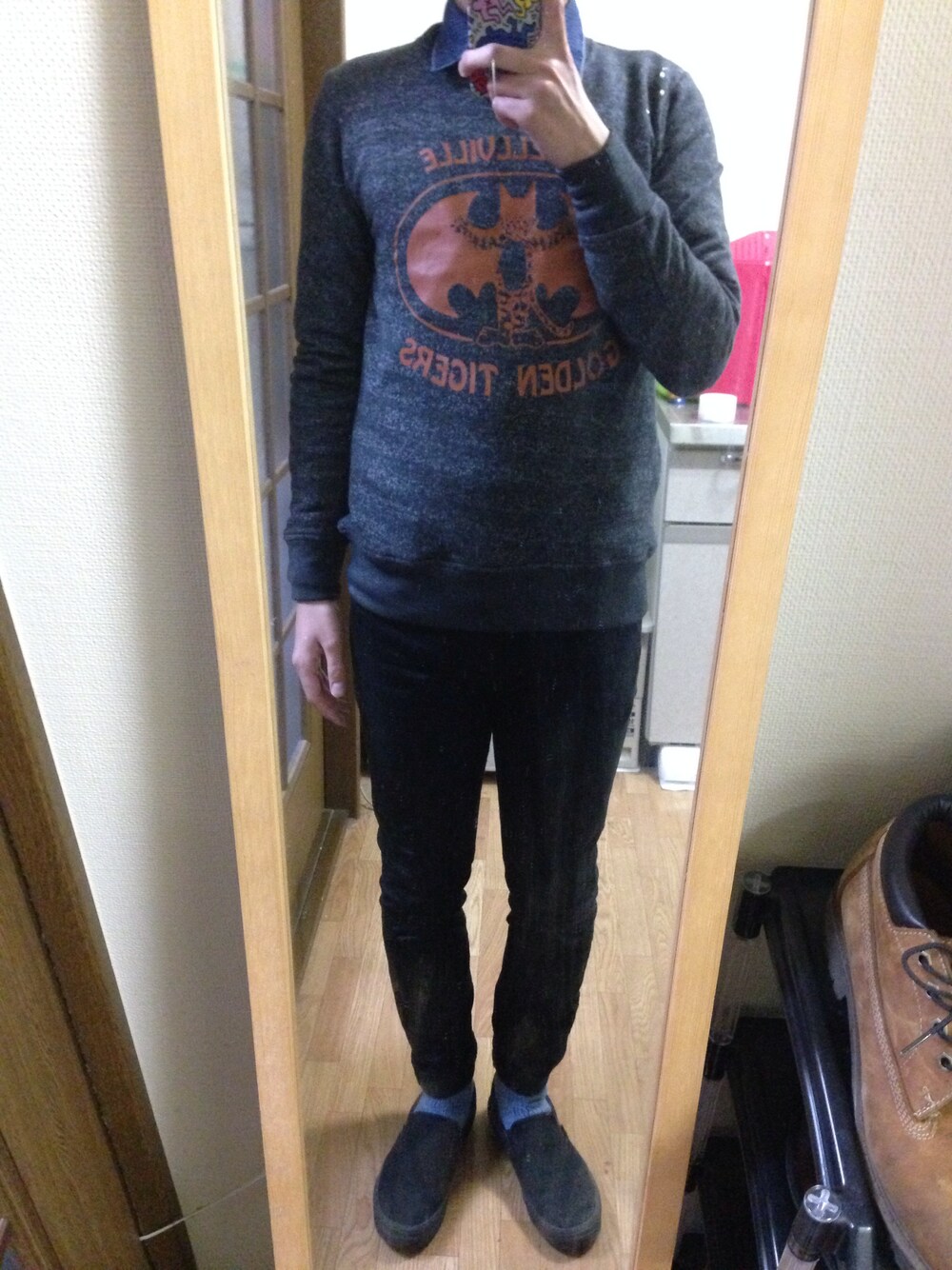 黒を基調にしました! すべて黒だと重たい感じなので 靴下を濃いめの水色にしてロールアップで チラ見せしました(´ω`)