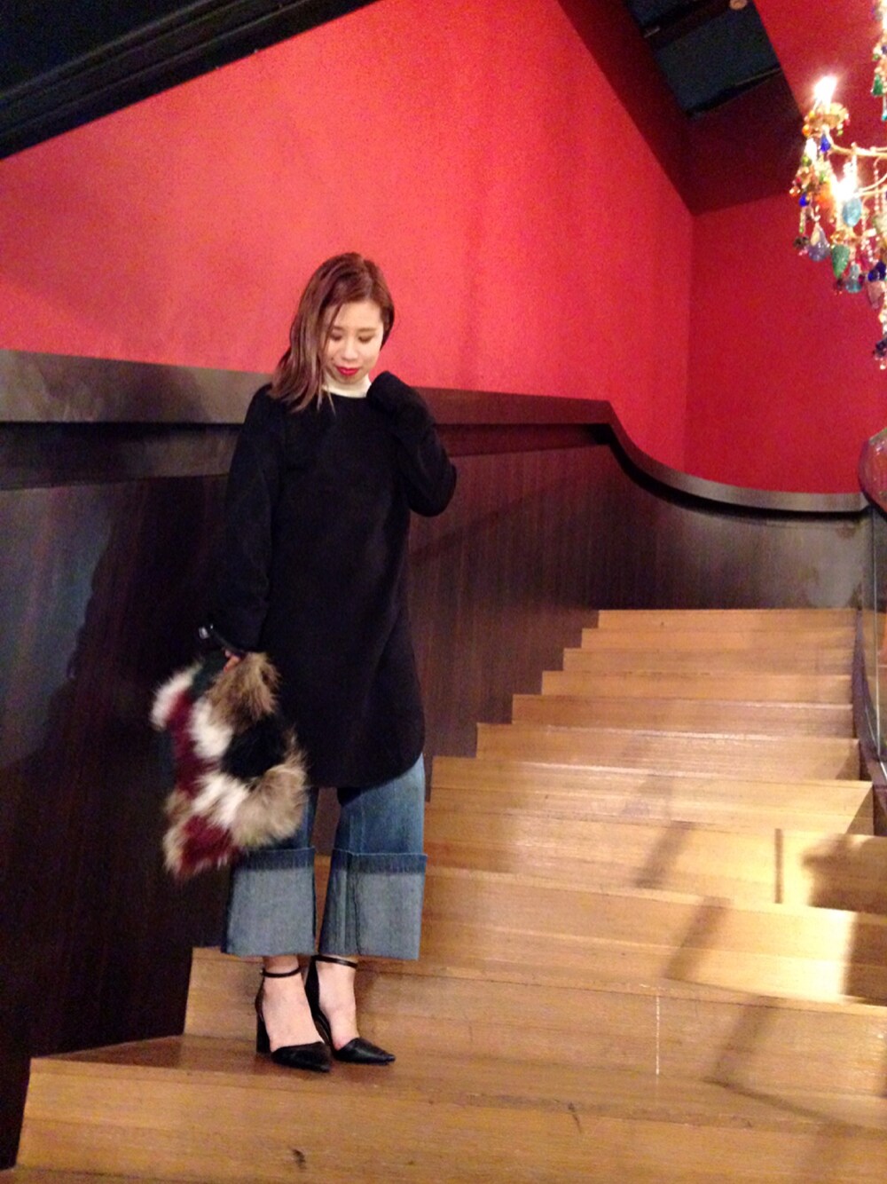 M/Mのカットソーは裏起毛になっていてとてもあったかいです! デニムはわざとロールアップして大人めにスタイリングしました。