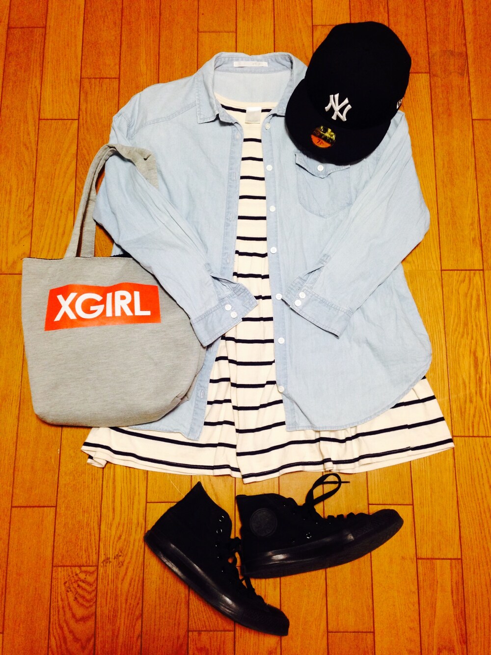 outer : used dress : RETRO GIRL bag : X-girl cap : NEW ERA shoes : CONVERSE