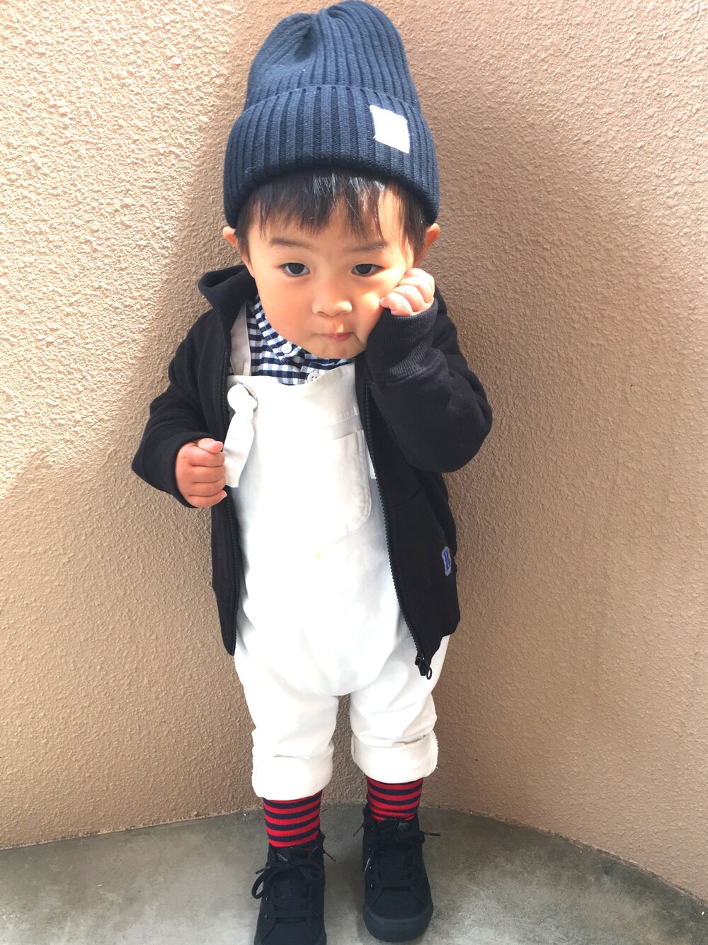 いつもありがとうございます♡ "ニコニコ"のポーズなんですが なぜか顔はニコニコしてないという😂 シャツだけでは寒いと思ってパーカー着せたけど すぐ脱いでました(笑) 最近服装が難しい💦