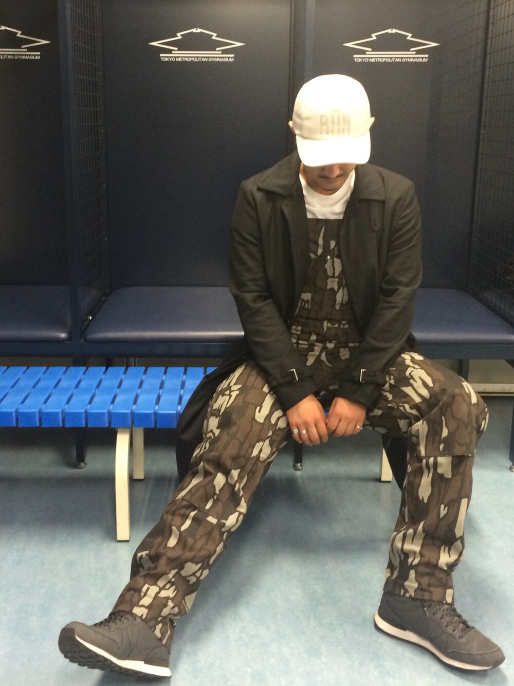 モノトーンのストリートミックス ゴツゴツしたWIPのオーバーオールにキレイ目なVLANKのロングコート
