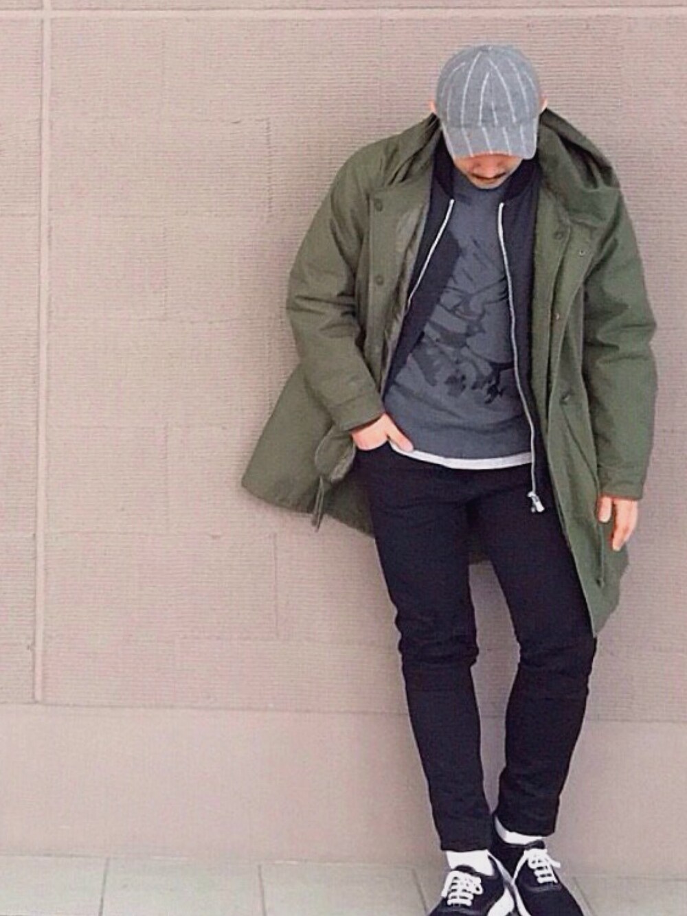 寒いので、MA-1のインナー使い。シンプルでお気に入りのVLANK。あと、MOUSSYのメンズデニムがすこぶる調子◎!いままで穿いてきたストレッチスキニーの中で第1位かも。。