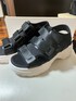 ホワイト系のTシャツ/カットソー、グレー系のデニムスカート、ブラック系のサンダルを着用したレディースの夏コーディネートの2枚目の写真