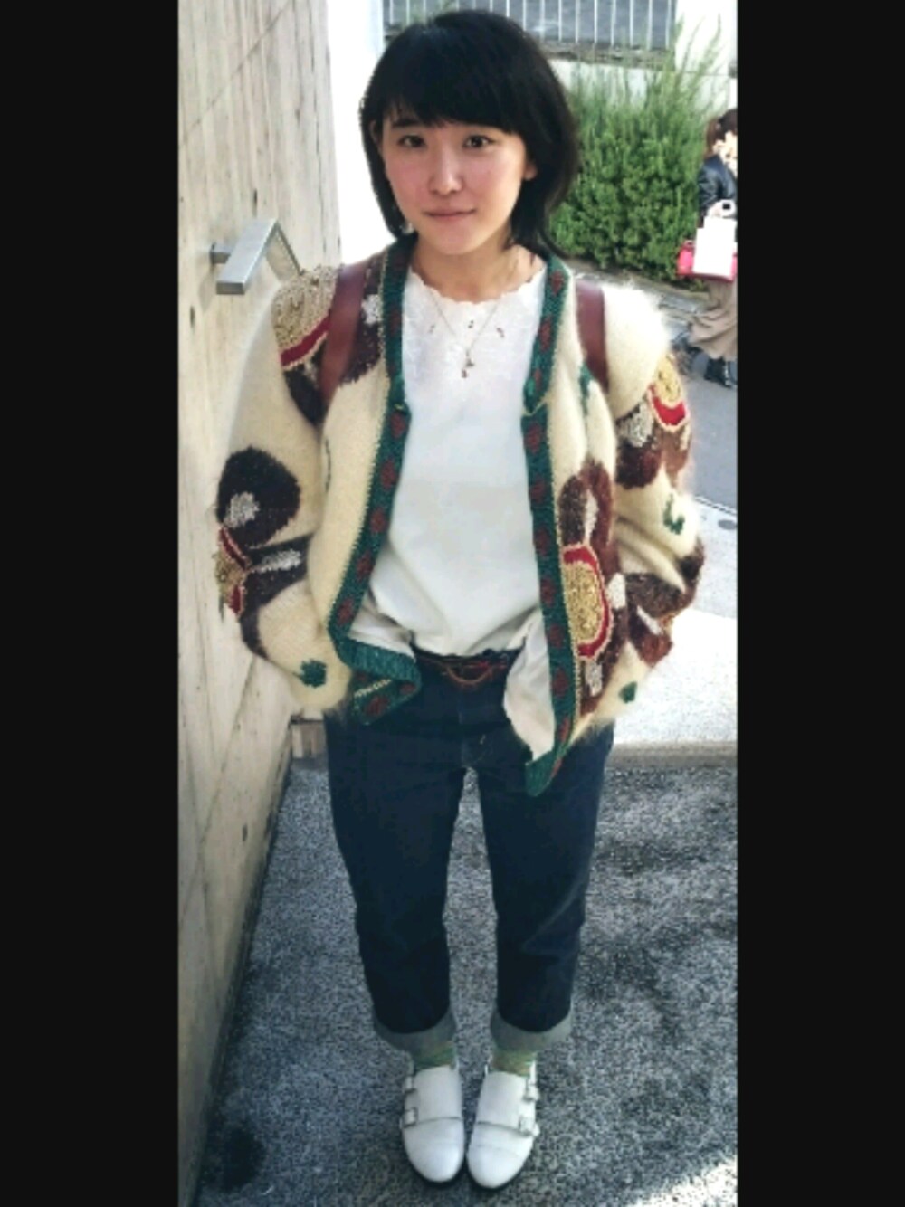 暖かいので、 古着の薄いニットジャンパーに これまた古着のシャツを合わせて。 orientaltrafficのモンクストラップシューズははきなれるとヘビロテしてしまうくらい良い感じ✨