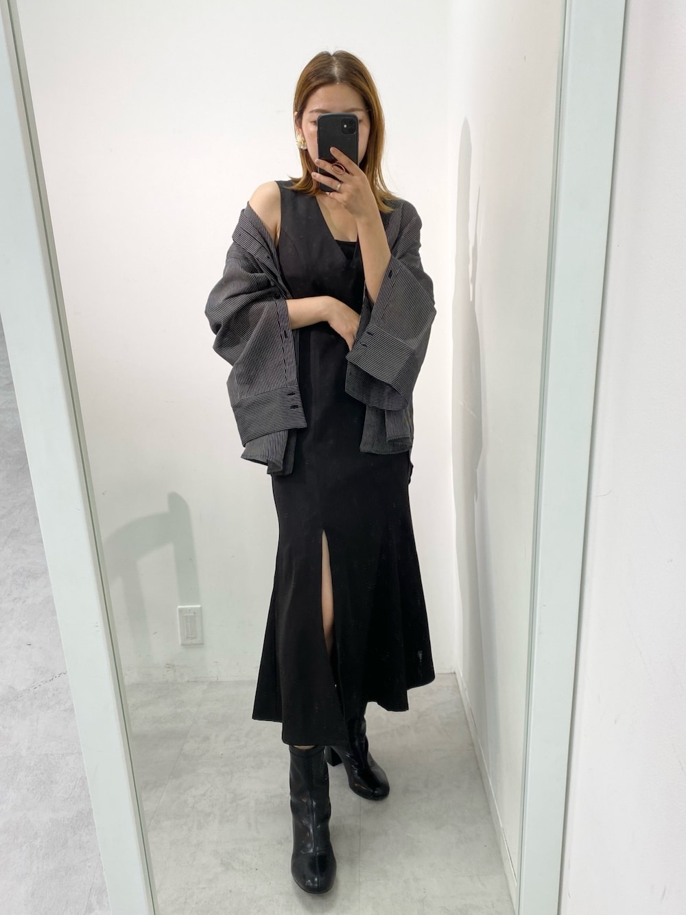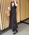 ホソヤヤスコ(one after another NICE CLAUP)のジャンパースカート「【ZOZO限定】インナーによって印象が変わる。Vネックマーメイドワンピース」を使ったコーディネート