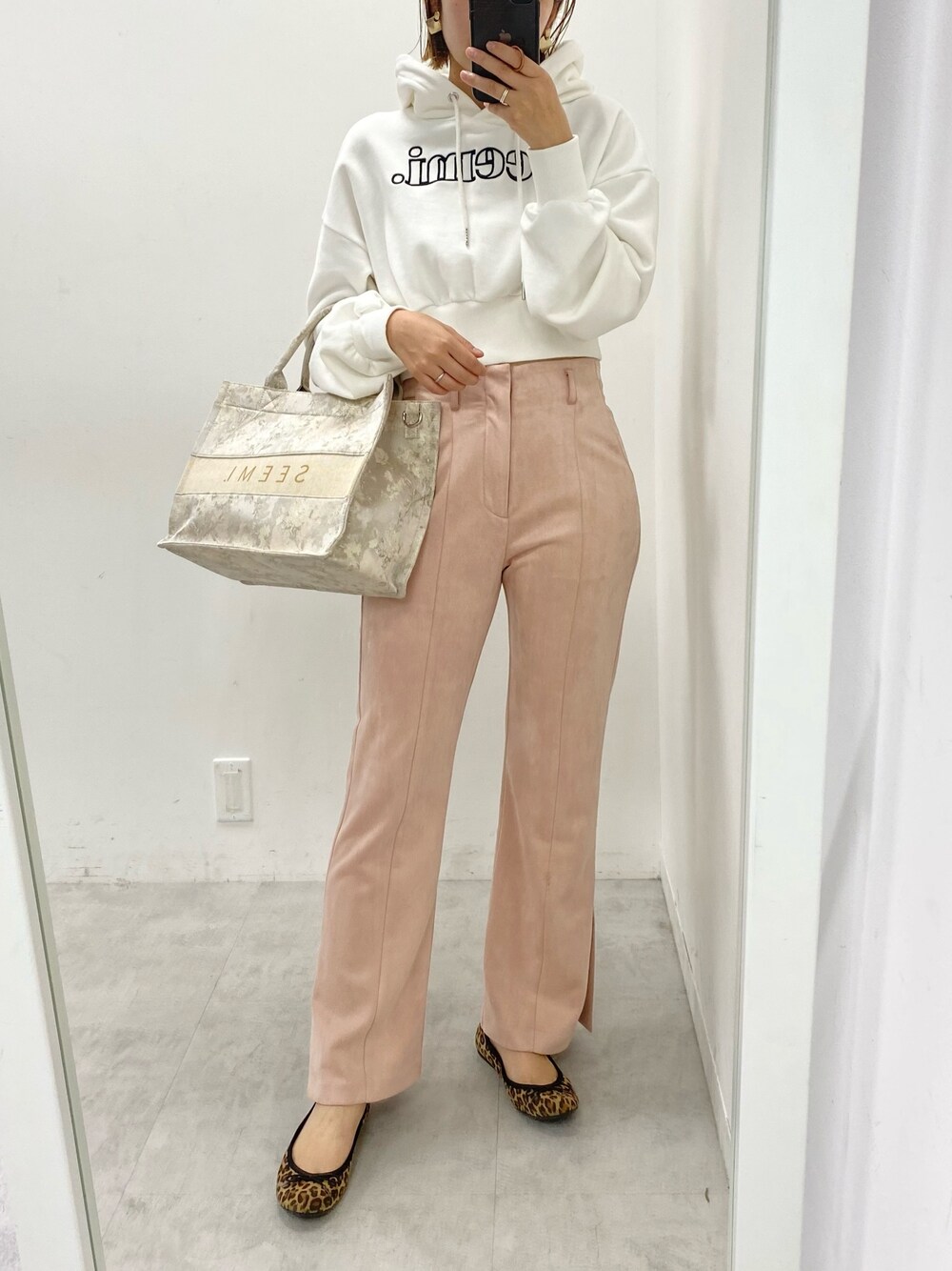 ホソヤヤスコ(one after another NICE CLAUP)のパーカー「【Seemi】Seemi.ロゴ刺繍パーカー」を使ったコーディネート