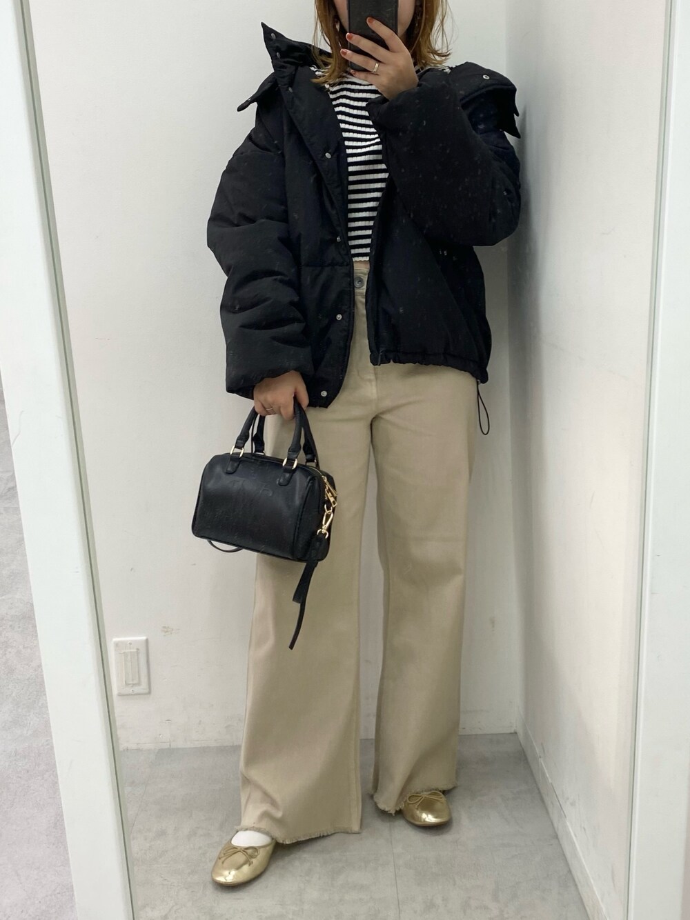 ミドルダウンの着回しコーデ。