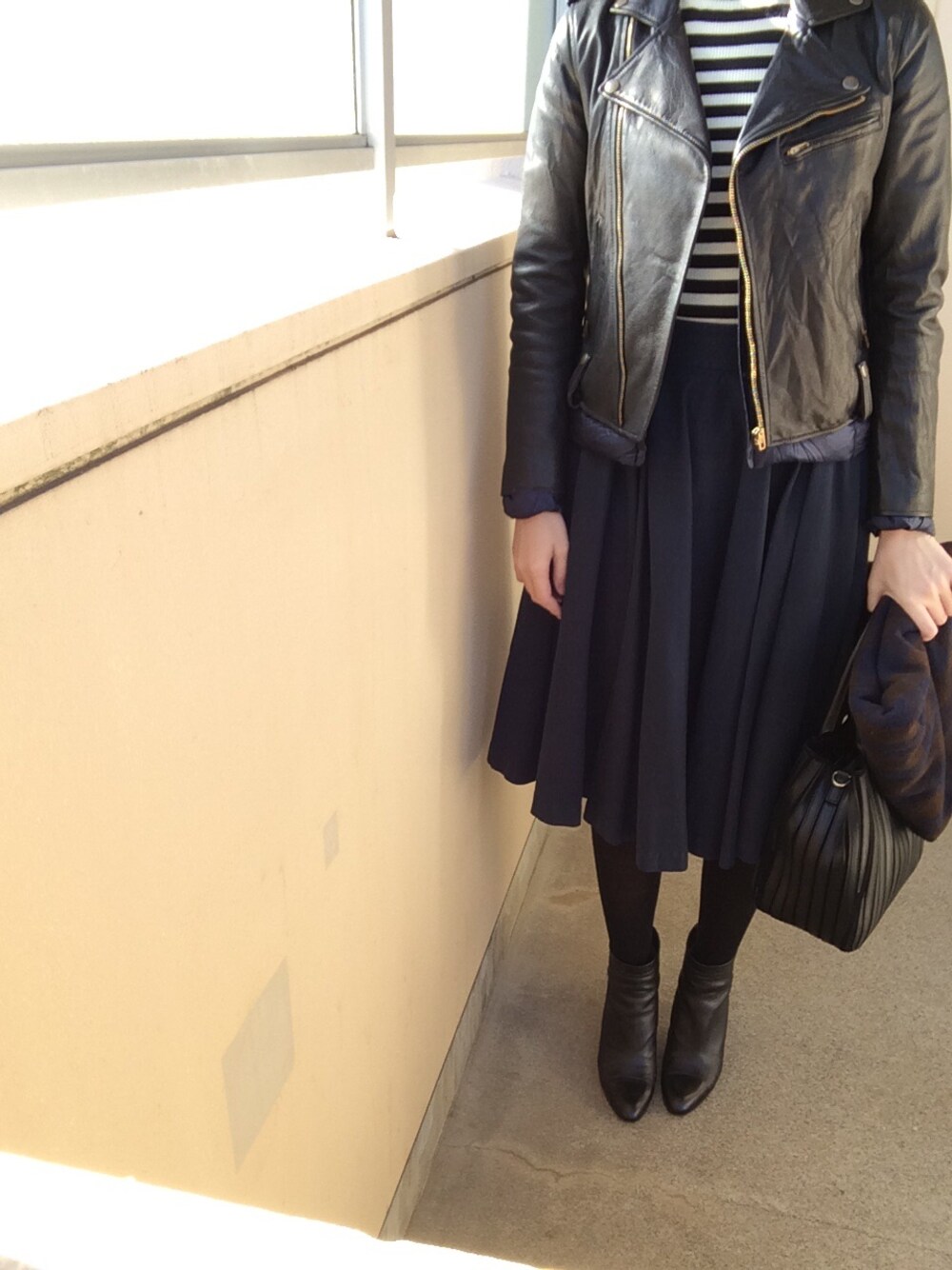 タートル*DEUXIEME CLASSE スカート*Whim Gazette ライダース*DEUXIEME CLASSE ショートブーツ*PELLICO バッグ*ANYA HINDMARCH