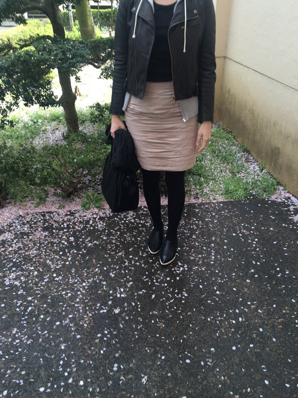 カットソー*無印良品 パーカー*DRESSTERIOR スカート*ESTNATION bis ライダース*DEUXIEME CLASSE スリッポン*Le Talon