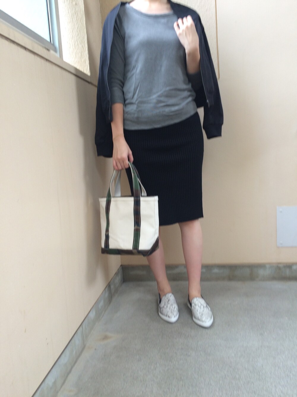 カットソー*JAMES PERSE スカート*GU スリッポン*Le Talon バッグ*L.L.Bean