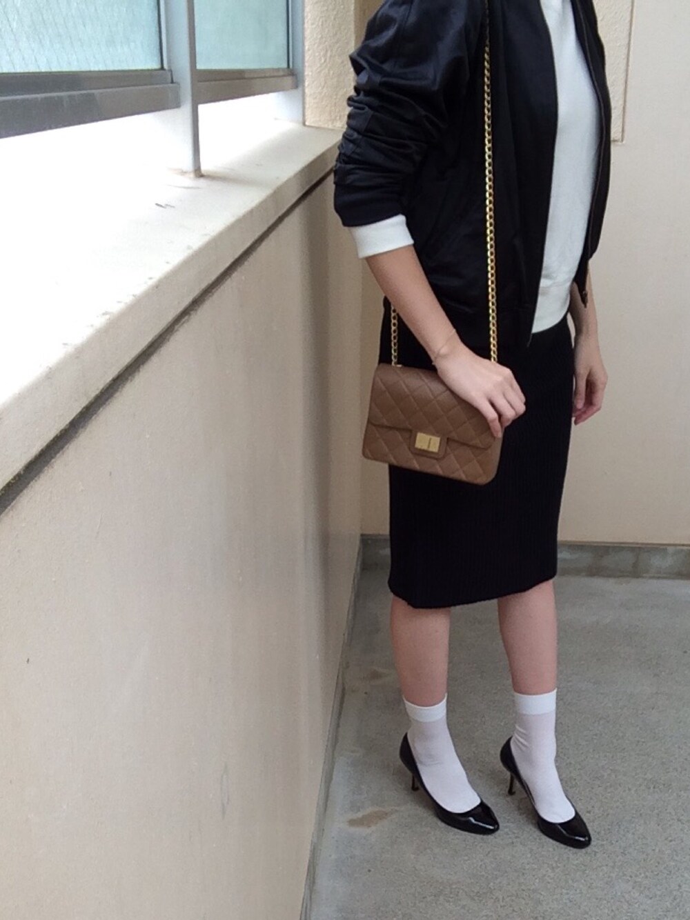 スウェット*UNIQLO×INES ニットスカート*GU アウター*UNIQLO×INES パンプス*FABIO RUSCONI バッグ*Deuxieme Classe