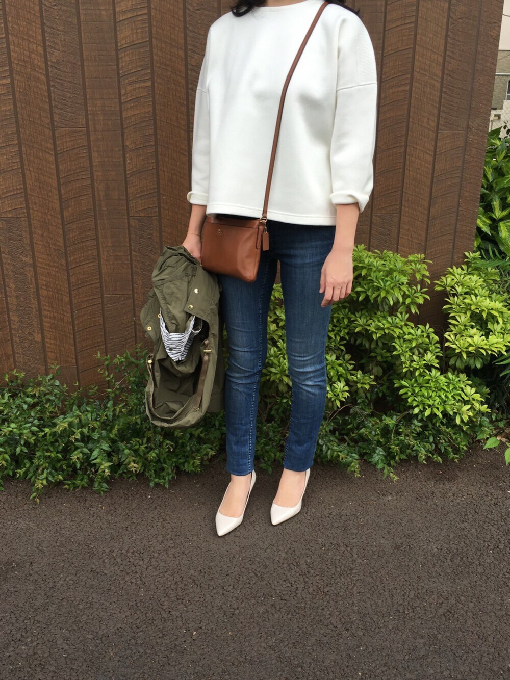 トップス*Deuxieme Classe デニム*Acne アウター*GU パンプス*ZARA バッグ*COACH