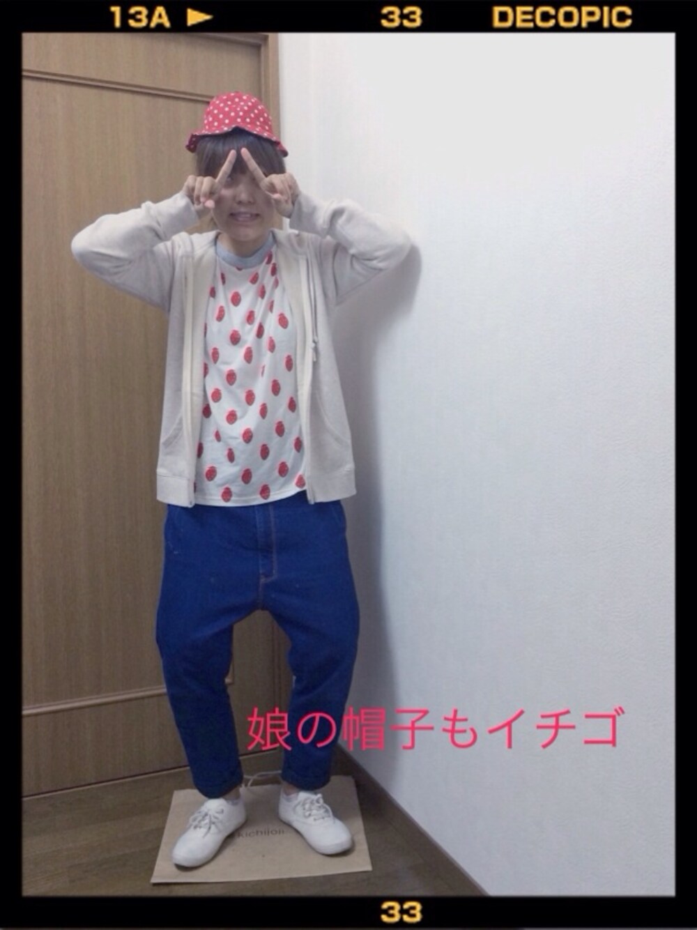 ボトムス○mercibeaucoup, 娘の帽子もイチゴ仕様だったので被ってみました。