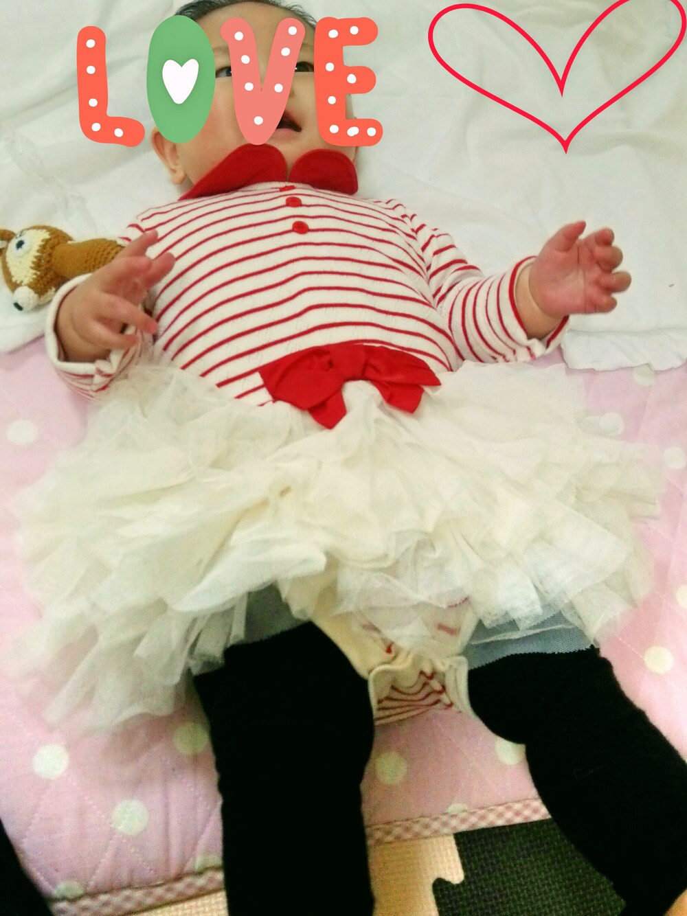 本当は赤いタイツもセットでついてました。 室内だったので、レギンス履きで♪ 派手派手チュールワンピです(*´ω`*)