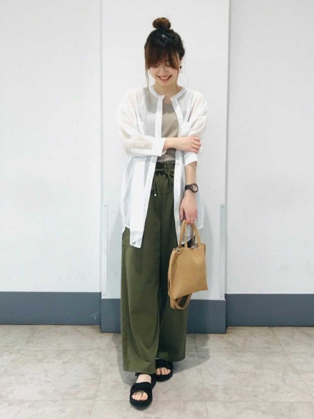 ご覧頂きありがとうございます。 今回は、シアーシャツを羽織としてタンクトップと合わせたコーデです。 トレンドのシアー素材が女性らしく1枚あるだけて着回し効くアイテムです。 パンツは、太めのシルエットですが、ストレートなので足をスッキリみせてくれます。 他の色もあるのでチェックしてみて下さい。