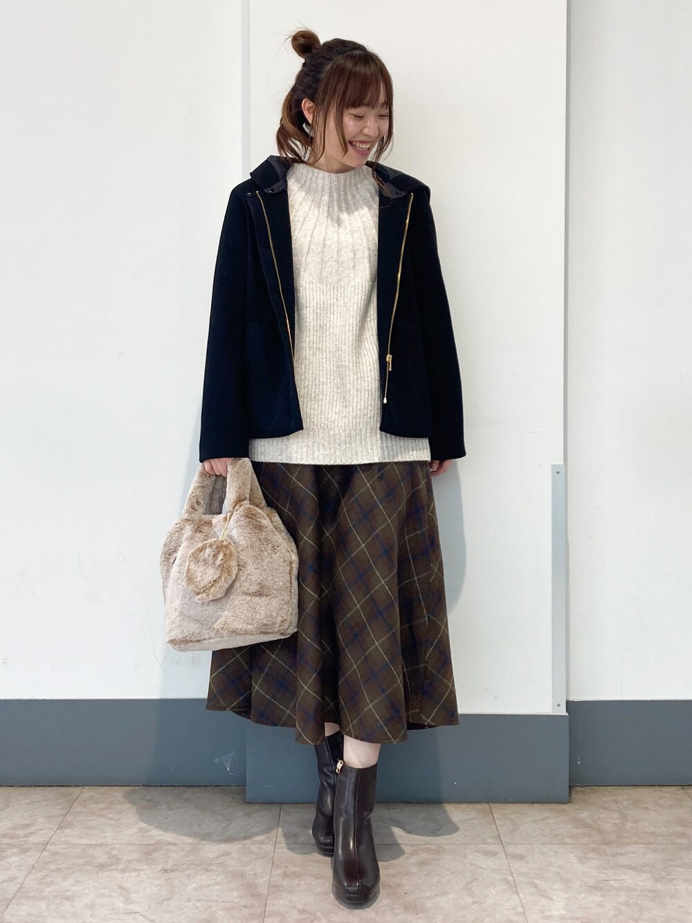 はるなのニット/セーター「◆ウール混求心編みニット」を使ったコーディネート