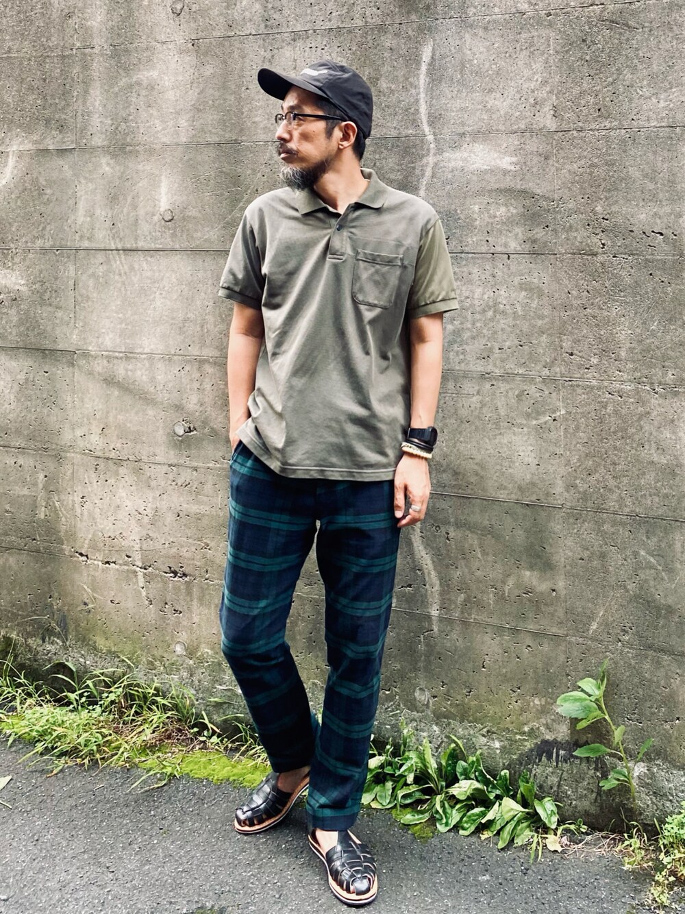 UNIQLO×ガーメンツのポロシャツにラルフローレンのブラックウォッチパンツ、ご提供いただいたヴァリジスタのグルカサンダルで。 More Details→Instagram @yagihashi_tiny