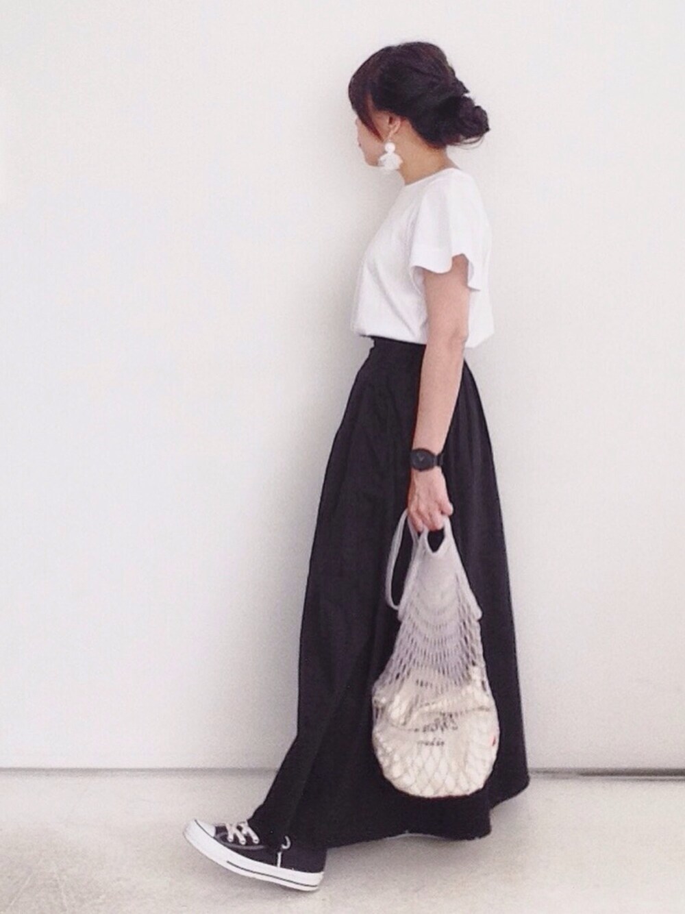 1000円引きクーポンで買ったマキシスカートを早速着てみました。 冬以外のスカート選びで重要視するのは、裏地がないこととポケットがあること。 背が低いのでロングスカートのシルエットはウエスト周りがスッキリしていることも気にします。 このスカートはスッキリしているのにボリュームがあって、生地も厚くなく、着心地もよく、おススメです。 トップスは数年前のものです。 今日もアプリがダメでPCからアップ。