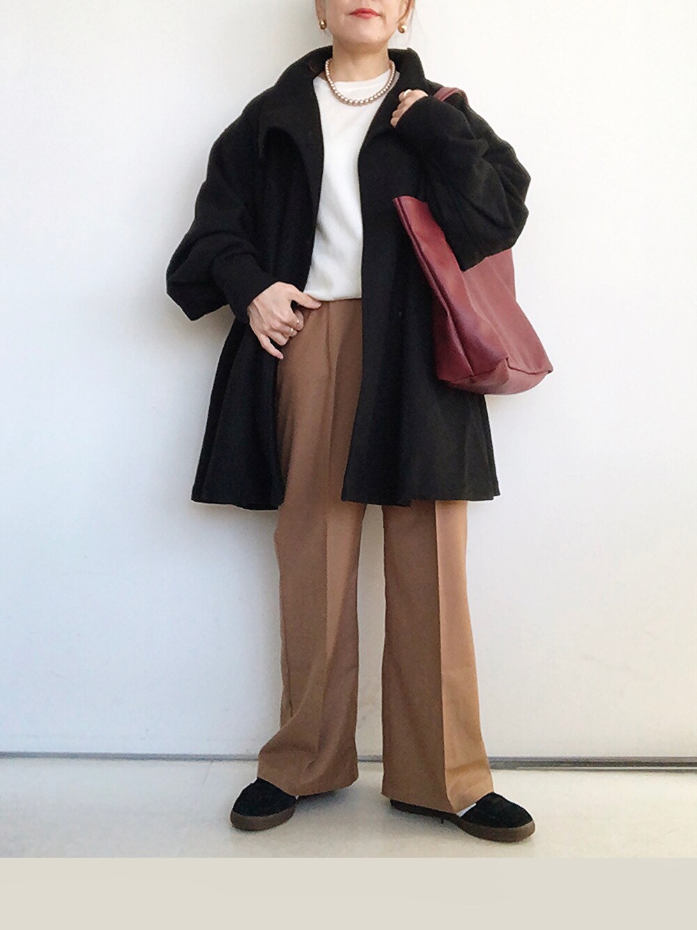 昨日のコーデ アウター着用バージョン トートバッグとショルダーバッグ、2パターン載せてます