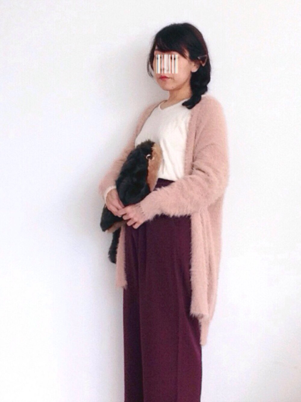 今日は暖かいので、カーディガンにスリッパ。 黒が続いたので今日はピンクを着ました。 ピンク×ボルドーは好きな配色です。 ピンクは何にでも合うし明るくなるから好きです。 マジェスティックレゴンの薄手Vネックニットはずっと昔に買ったものです。