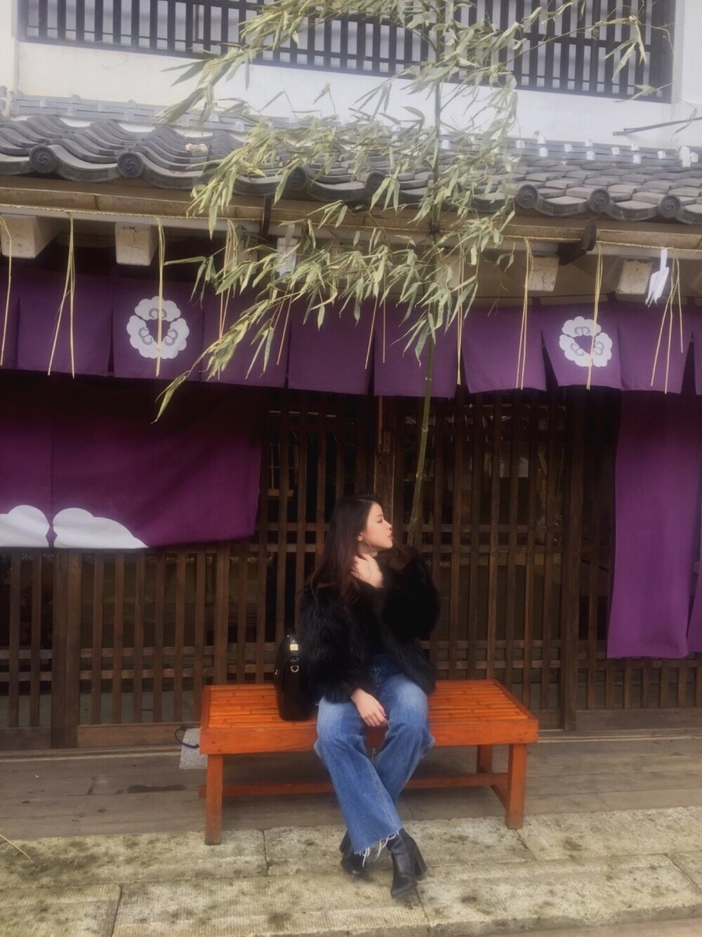 記念日デートで栃木旅行☺ 気付いたら全身マウジー❣️ 最近手に入れたワイドデニムの形、バックスタイルがドツボ過ぎて🖤🖤