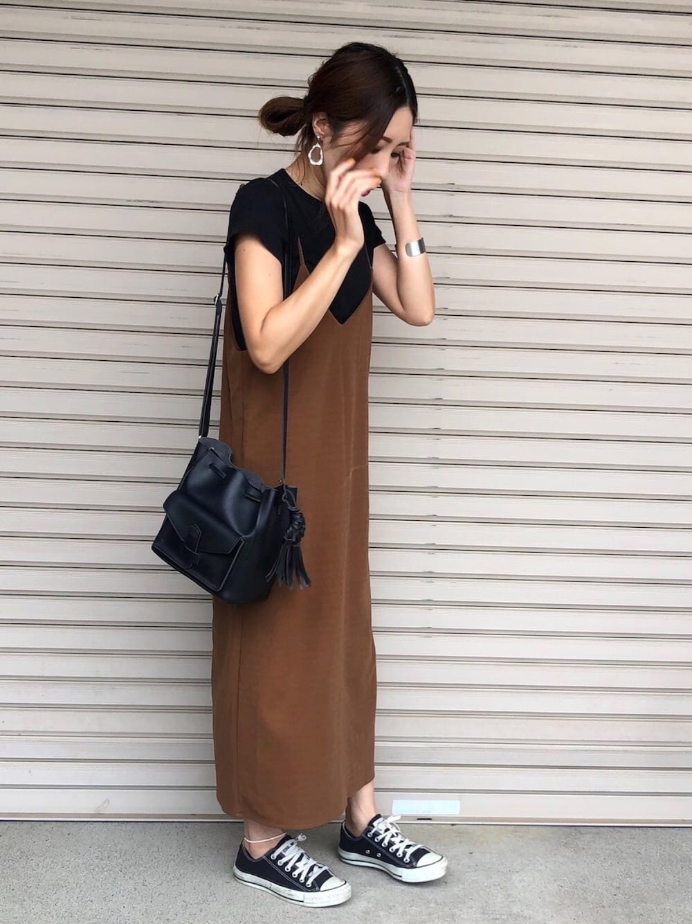 やよのワンピース「[販売枚数23万枚突破][高身長/大きいサイズ有][お気に入り登録数5.2万][イージーケア]ジョーゼットポンチロングキャミワンピース」を使ったコーディネート