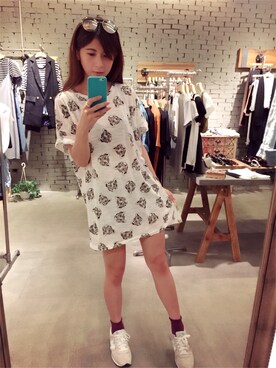 「PUPU,JUMPのアイテム(Tシャツ/カットソー、ホワイト系)」を使った、Unaさん(レディース・159cm)の夏コーディネート