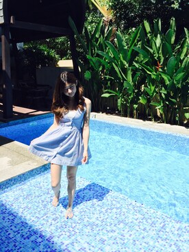 「ZARA(ザラ)のアイテム(ワンピース、ブルー系)」を使った、Unaさん(レディース・159cm)の夏コーディネート