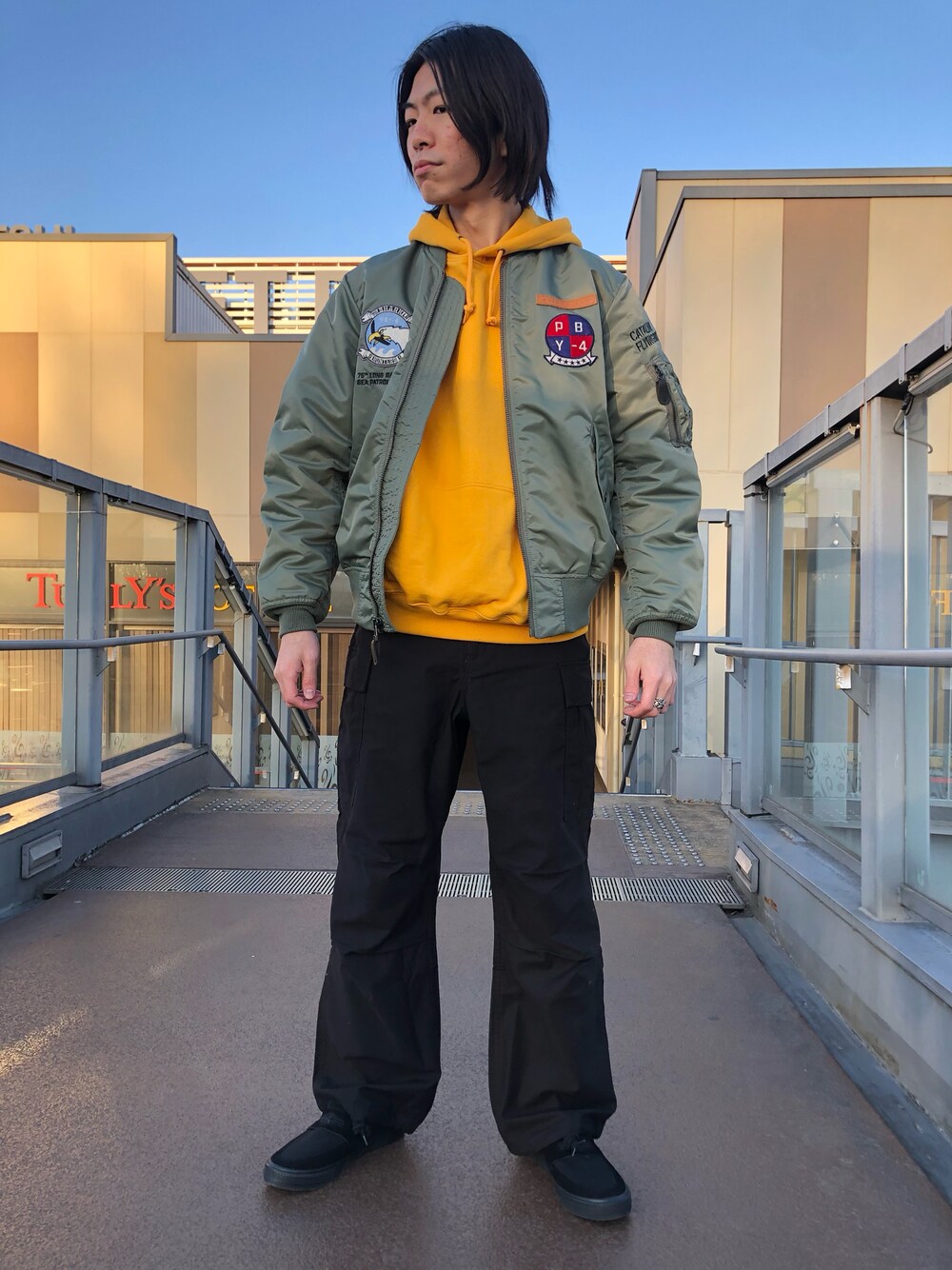 AVIREX DEPOTの復刻シリーズにMA-1が登場。 今回は水上機部隊がモチーフで前に機体名のワッペン、後ろには哨戒機が雷撃で潜水艦と戦う姿を鳥と稲妻で表現した刺繍が入ります。 さらに、今回はピンナッププリントが人気の新作パーカーを差し色にコーディネートしてみました。 着用サイズ ジャケット: L パーカー: M パンツ: M サイズ感 ジャケット: 丈の長さは丁度いいです。 身幅は少し余裕があります。 パーカー: オーバーサイズに作られており、少し肩が落ちるようなゆとりがあります。 パンツ: ウエストに少しゆとりがあります。 丈の長さは丁度いいです。 通販承ります。 お気軽にご連絡ください。 AVIREX DEPOT入間店 TEL. 04-2902-5073