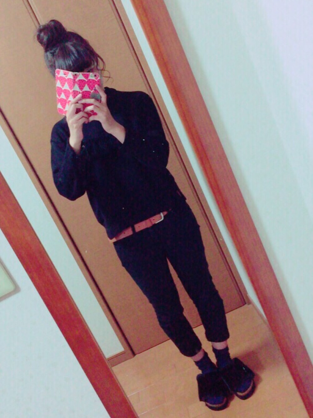 まっくろくろすけ。 オールホワイトコーデはあるけど オールブラックはあまり見ない😁 ベルトで差し色 カバンも茶色にしました。 フリンジのついた黒ニットはお気に入り。 首が詰まっててかわゆし。 あ、中二病ではありまてん。 黒すぎてこわかったのでお団子しました🙌😈