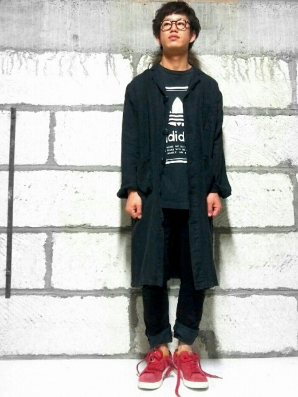 まねっこ。 こんにちは。 古着屋nene、やからです。 勝手にまねっこしました。 超絶大人気ユーザー「たらゴン」嬢のコーディネートです。 オールブラックに赤いスニーカーがかっこよすぎて真似しちゃいました。 後でめっちゃ怒られます。笑