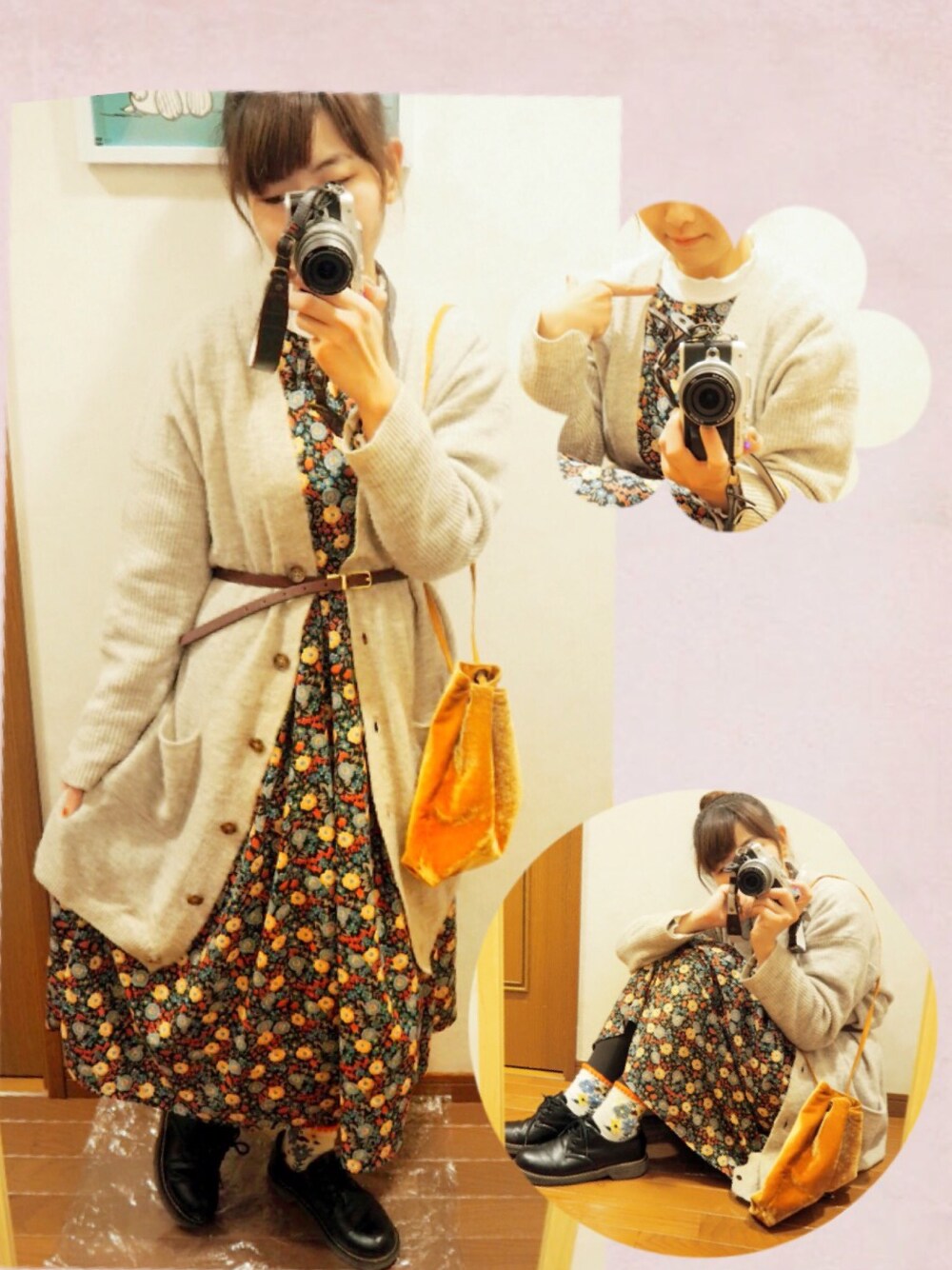 ehka sopoいっぱいな1日。 一目惚れしたレトロな花柄ワンピース 今っぽくするために長めのカーディガンに上からベルトを締めて低身長でも着られてる印象を受けないよう目線を上に。 髪型も高めの位置でお団子にして目線をあげて☀︎ 154cmと身長が低めな私はいつも目線を上に持っていく様に考えてます✩ 中に着ているトップスは首がフリルになっていて少し出すことで可愛さアップ♡♡ 靴はドクターマーチン風のもの(*¨*)とってもプチプラで履きやすい!