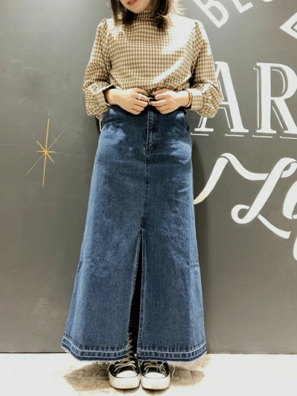 おがのシャツ/ブラウス「ウエストシャーリングハイネックブラウス」を使ったコーディネート